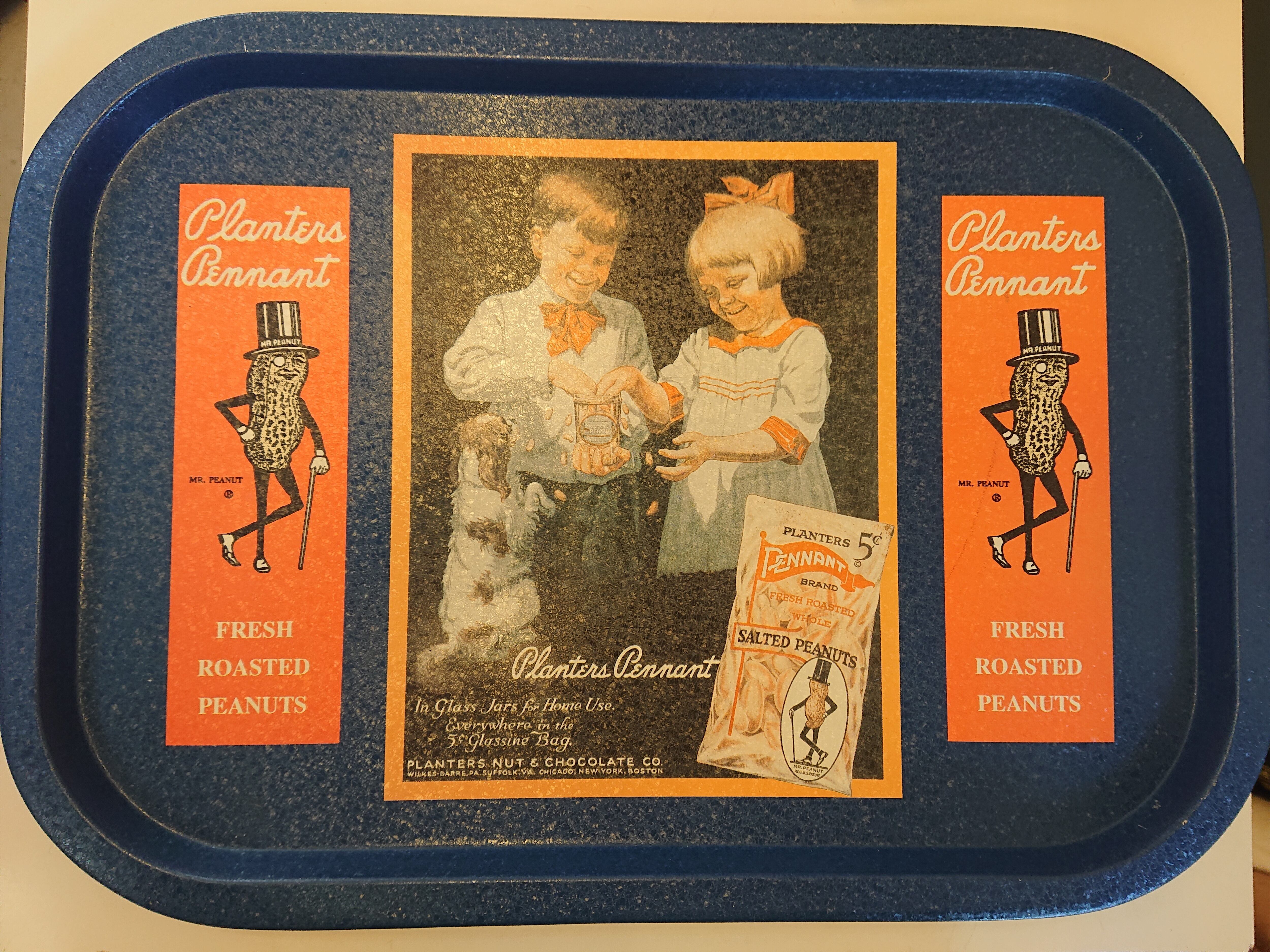1950年代のPLANTERS社の広告がそのままメタルトレイになりました。
